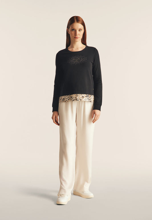 Felpa con inserto effetto camicia e dettagli dorati