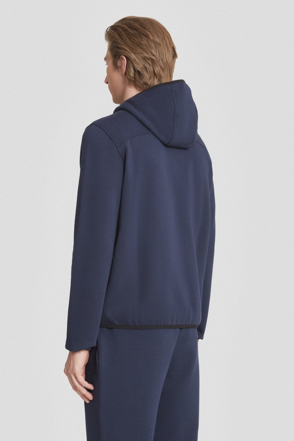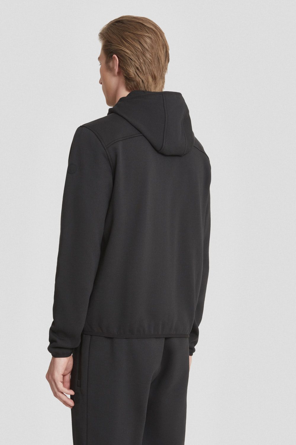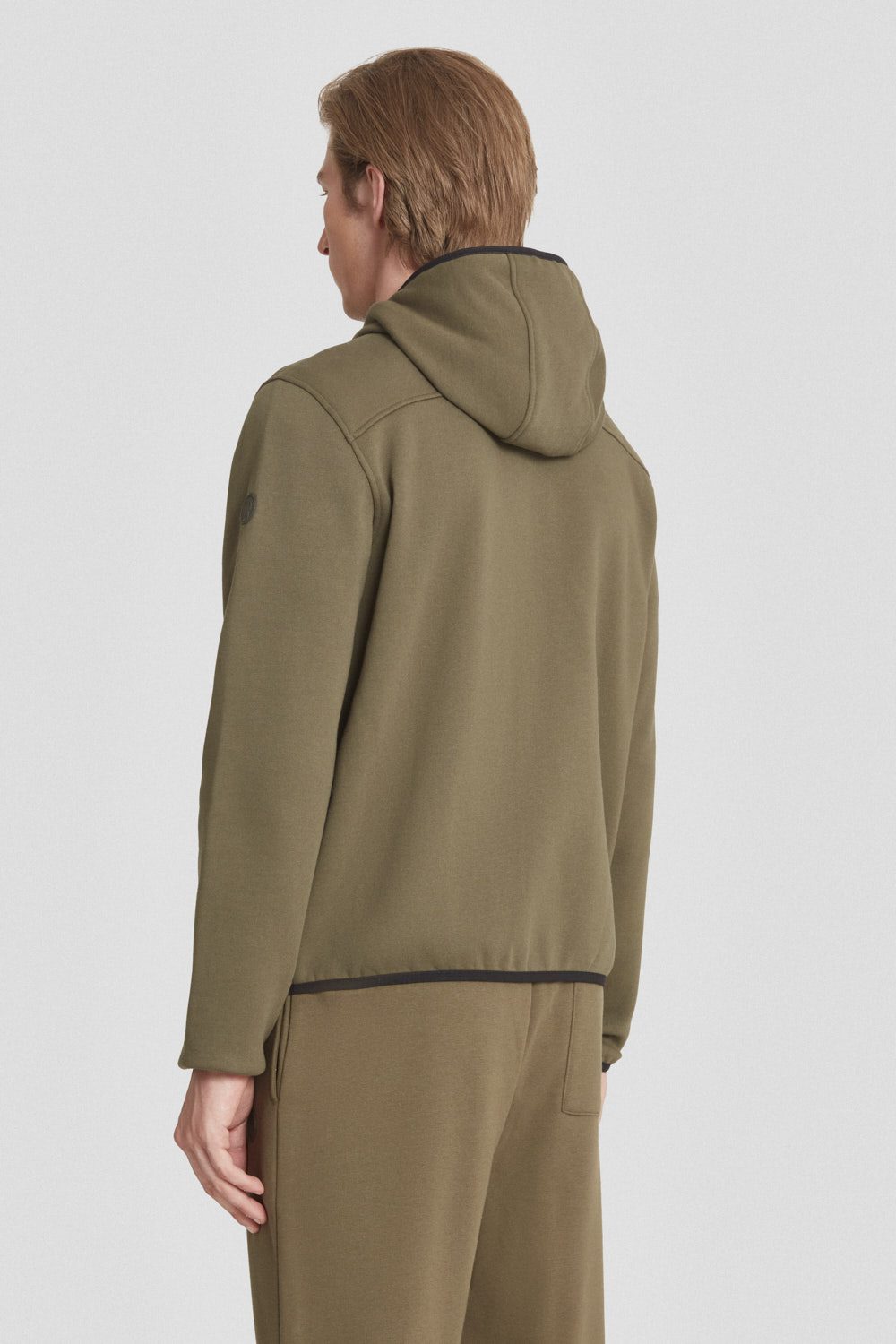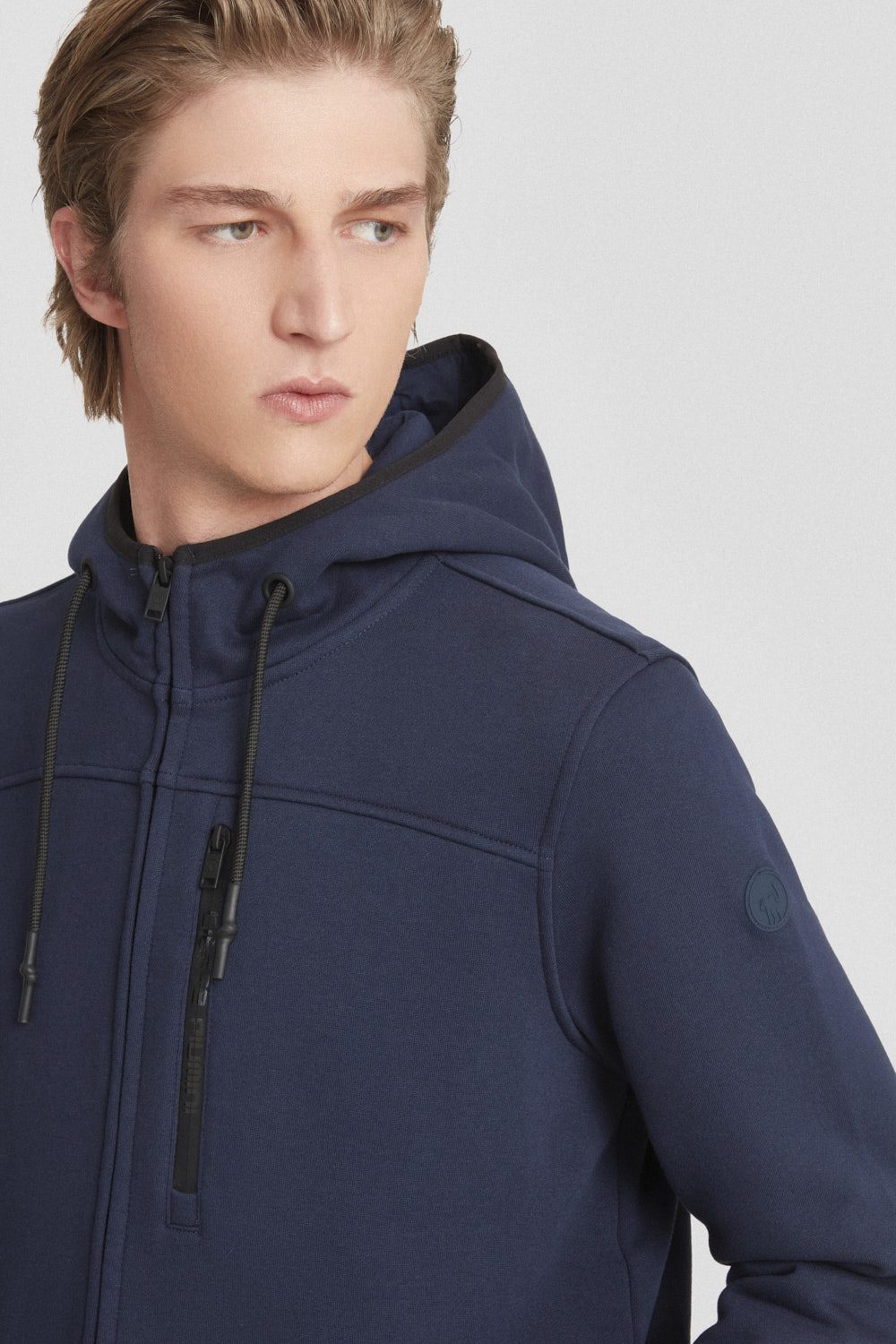 Felpa in polycotton con cappuccio foderato e tasche a marsupio. Un capo pratico, arricchito da una tasca al petto con zip nera waterproof brandizzata. I bordi in lycra su polsini e fondo garantiscono una vestibilità confortevole, mentre il cappuccio regolabile aggiunge funzionalità e protezione.