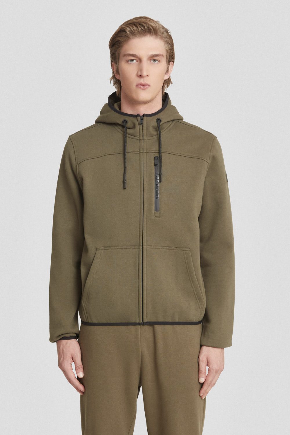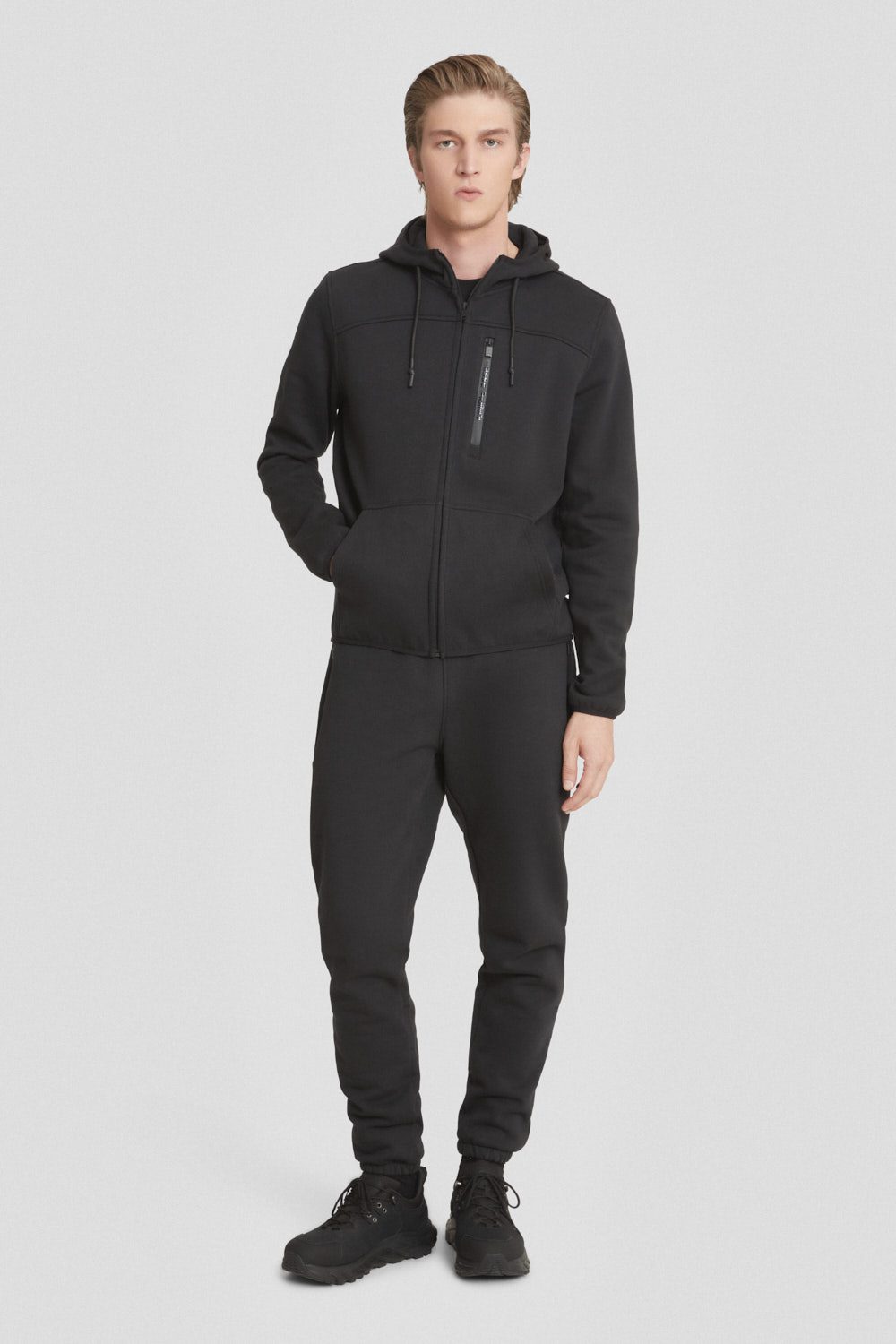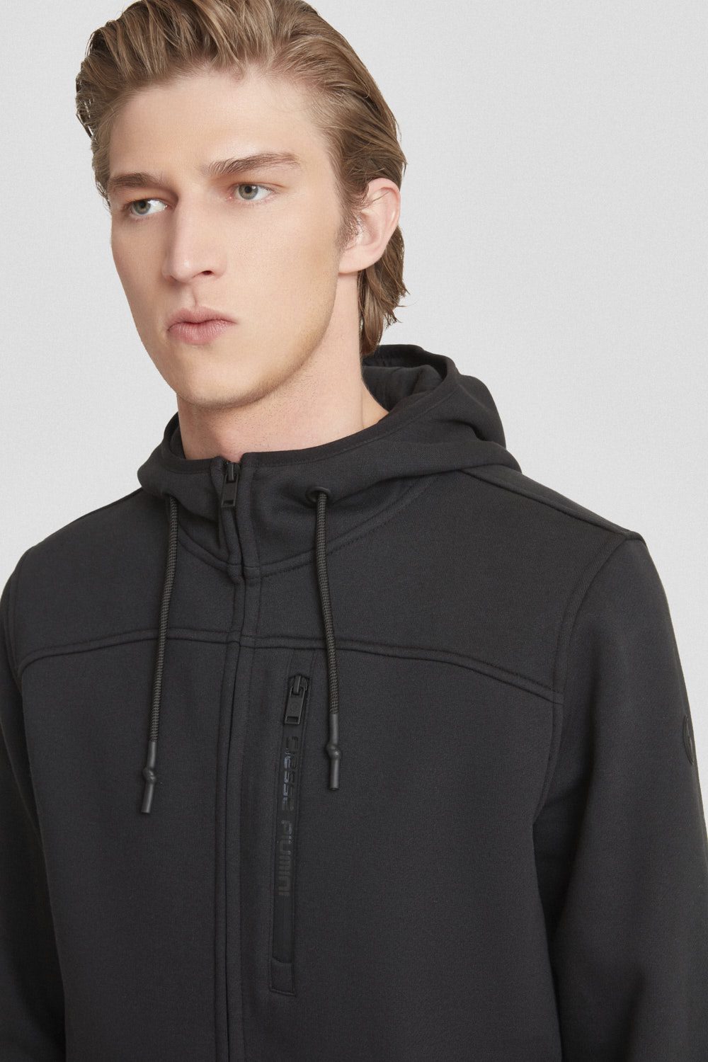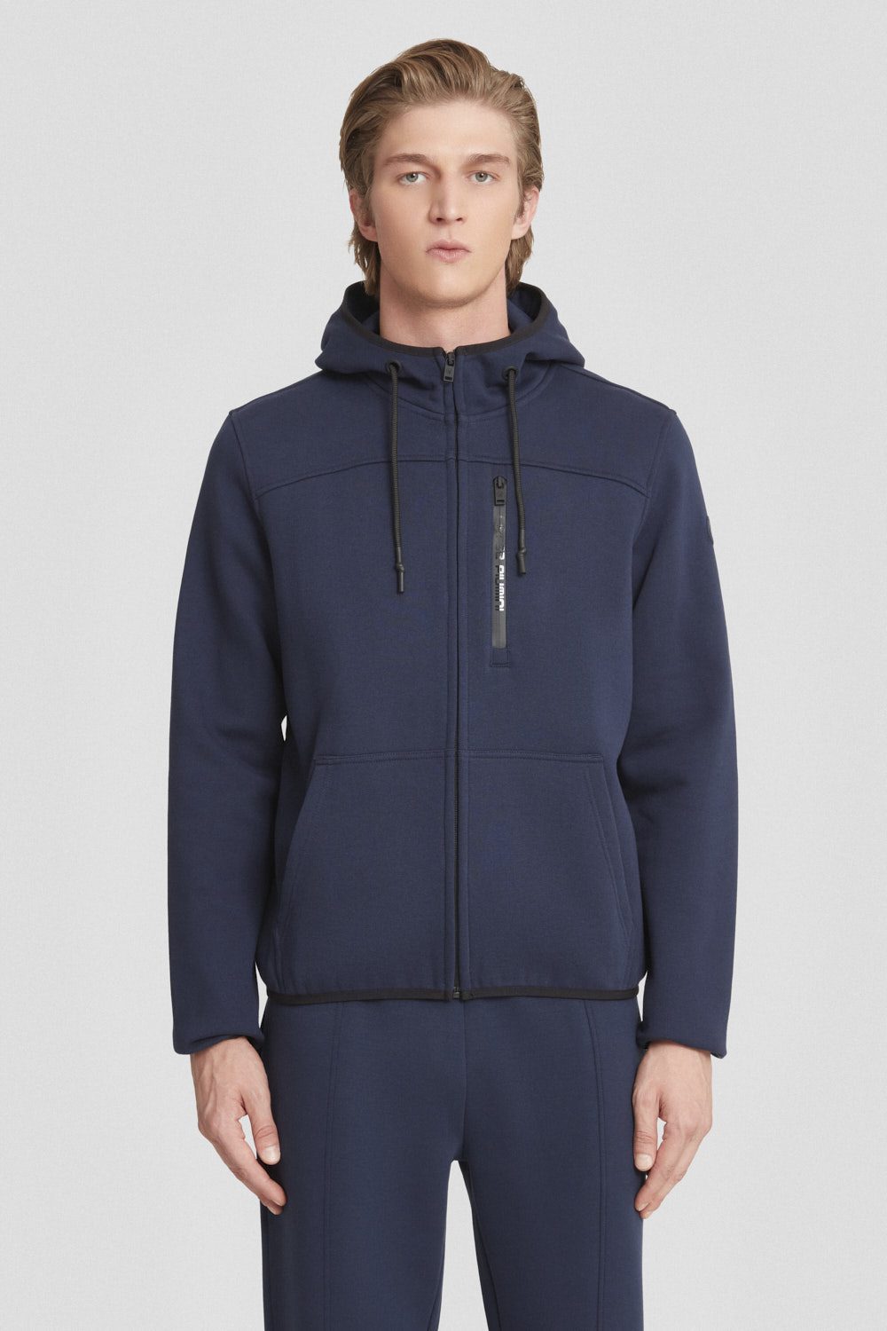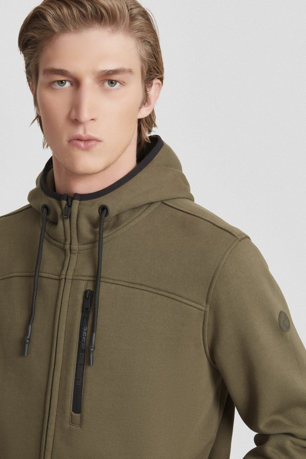Felpa in polycotton con cappuccio foderato e tasche a marsupio. Un capo pratico, arricchito da una tasca al petto con zip nera waterproof brandizzata. I bordi in lycra su polsini e fondo garantiscono una vestibilità confortevole, mentre il cappuccio regolabile aggiunge funzionalità e protezione.