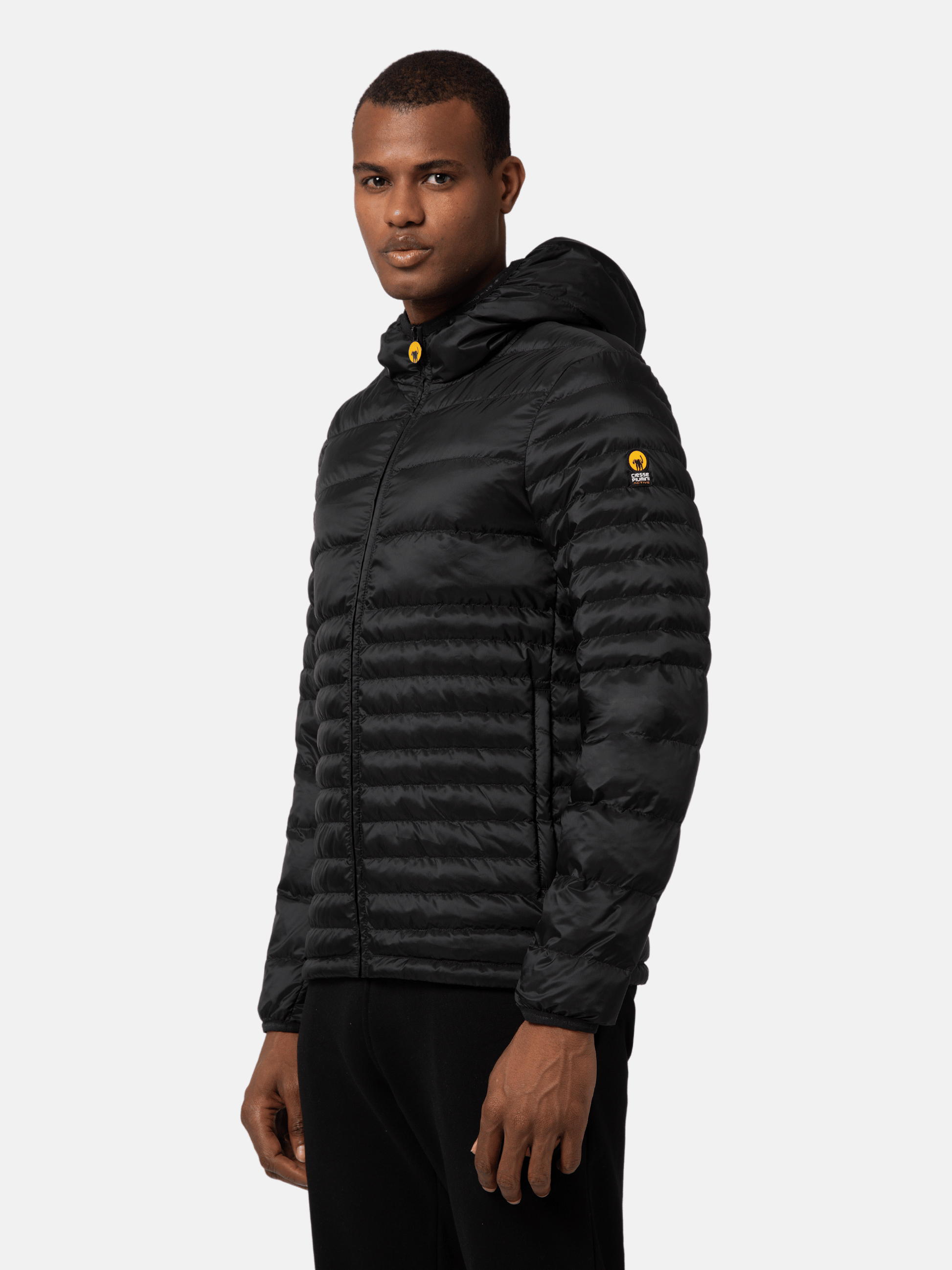 Un dettaglio di stile è rappresentato dall’iconico logo gommato applicato sulla manica, che identifica la qualità e l’autenticità del brand Ciesse Piumini. Grazie alla struttura trapuntata, questo piumino offre una perfetta combinazione tra isolamento termico e design raffinato, rendendolo ideale sia per la vita urbana che per le attività outdoor.